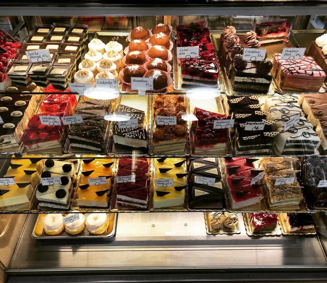 Ve vitríně najdete klasické české zákusky. Například punčový řez, větrník, špičku či linecké řezy, vše samozřejmě vyráběné podle původních receptur. Cukrárna tak zůstává živým důkazem, že i po téměř devíti dekádách lze udržet kvalitu, tradici a osobní přístup.