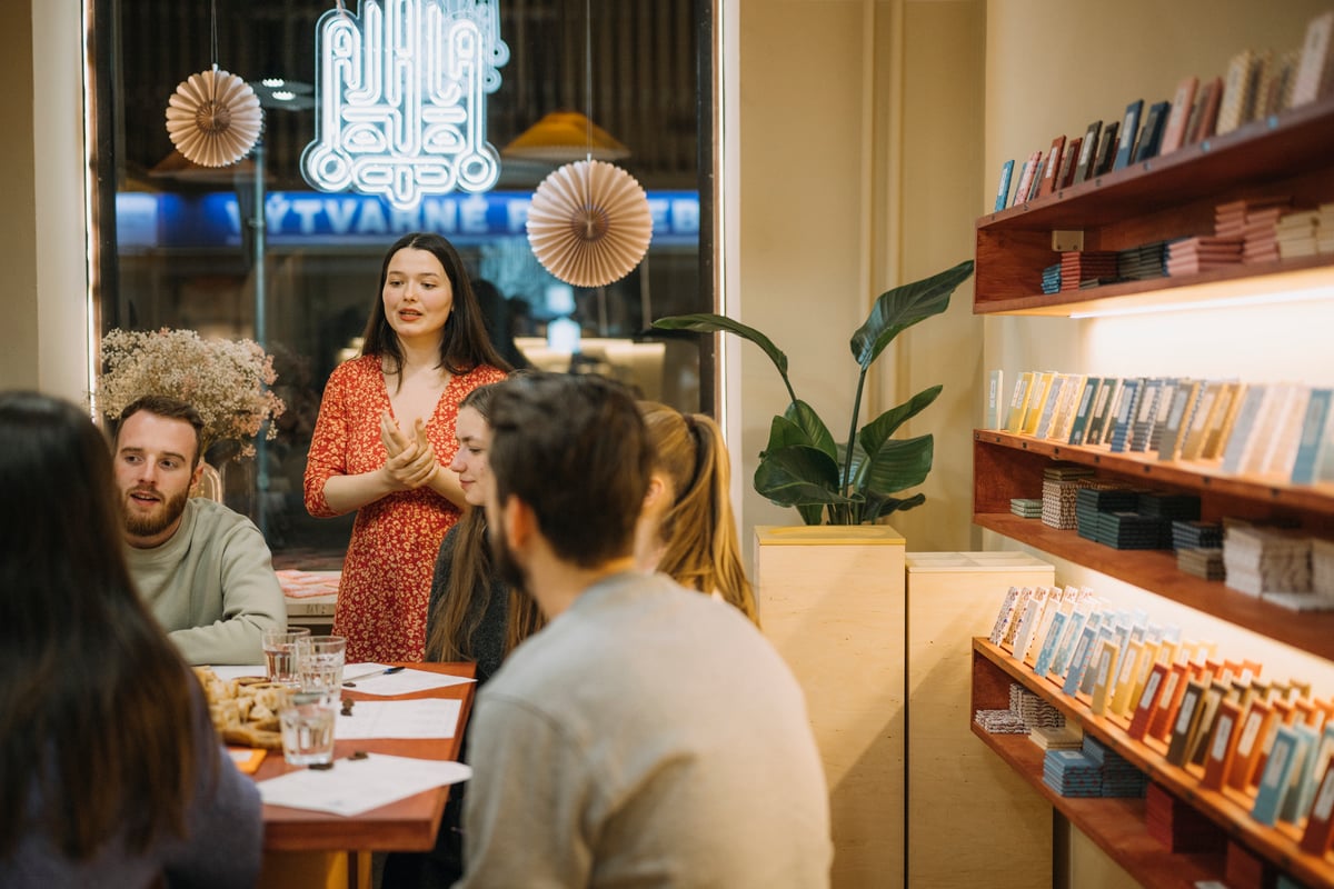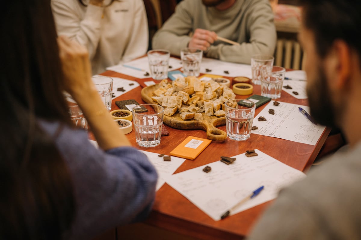 Náš showroom ale není jen obchodem. Je také místem pro zábavu, setkávání a vzdělávání se. Pravideně proto pořádáme různé pop-upy a také vedené degustace. Na těch se návštěvníci naučí čokoládu správně degustovat, dozví se spoustu zajímavostí o její historii, procesu výroby metodou bean to bar (od bobu po tabulku) i o původu kakaových bobů. A samozřejmě ochutnávají různé tabulky.