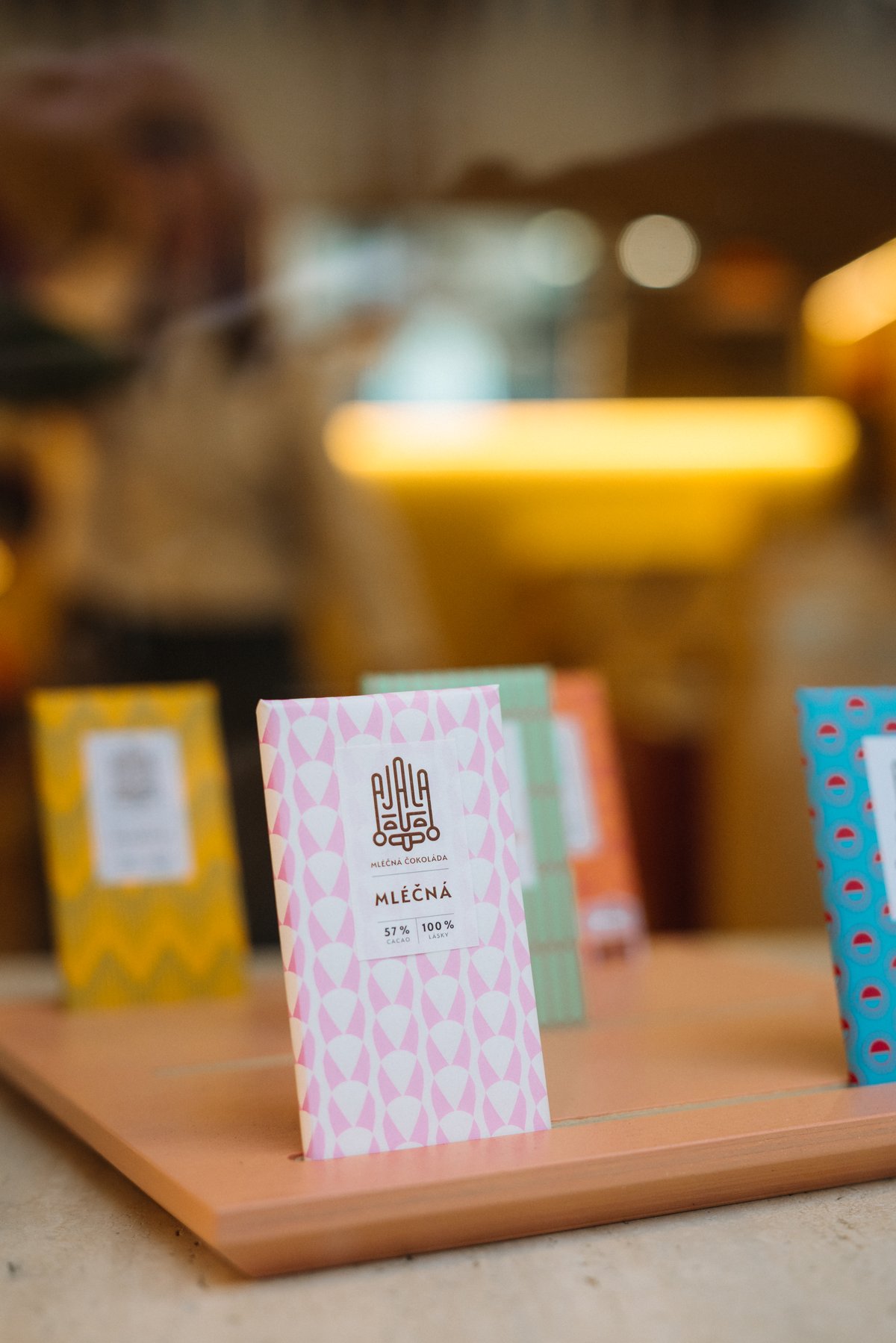 Ajala v sobě spojuje dvě tradice: indiánskou, tedy tradici původního zpracování kakaa, a domácí tradici výroby čokolády. Moc lidí o tom neví, ale Československo patřilo za první republiky k největším zpracovatelům kakaových bobů na světě. Právě skrze obaly chceme na tuto zlatou éru odkázat. Jejich vzory jsou inspirované prvorepublikovými motivy z vnitřních přebalů knih a tapet. Tištěny jsou metodou sítotisku a jejich návrhy pro nás vytváří restaurátor a grafický designér Ondra Zatloukal.