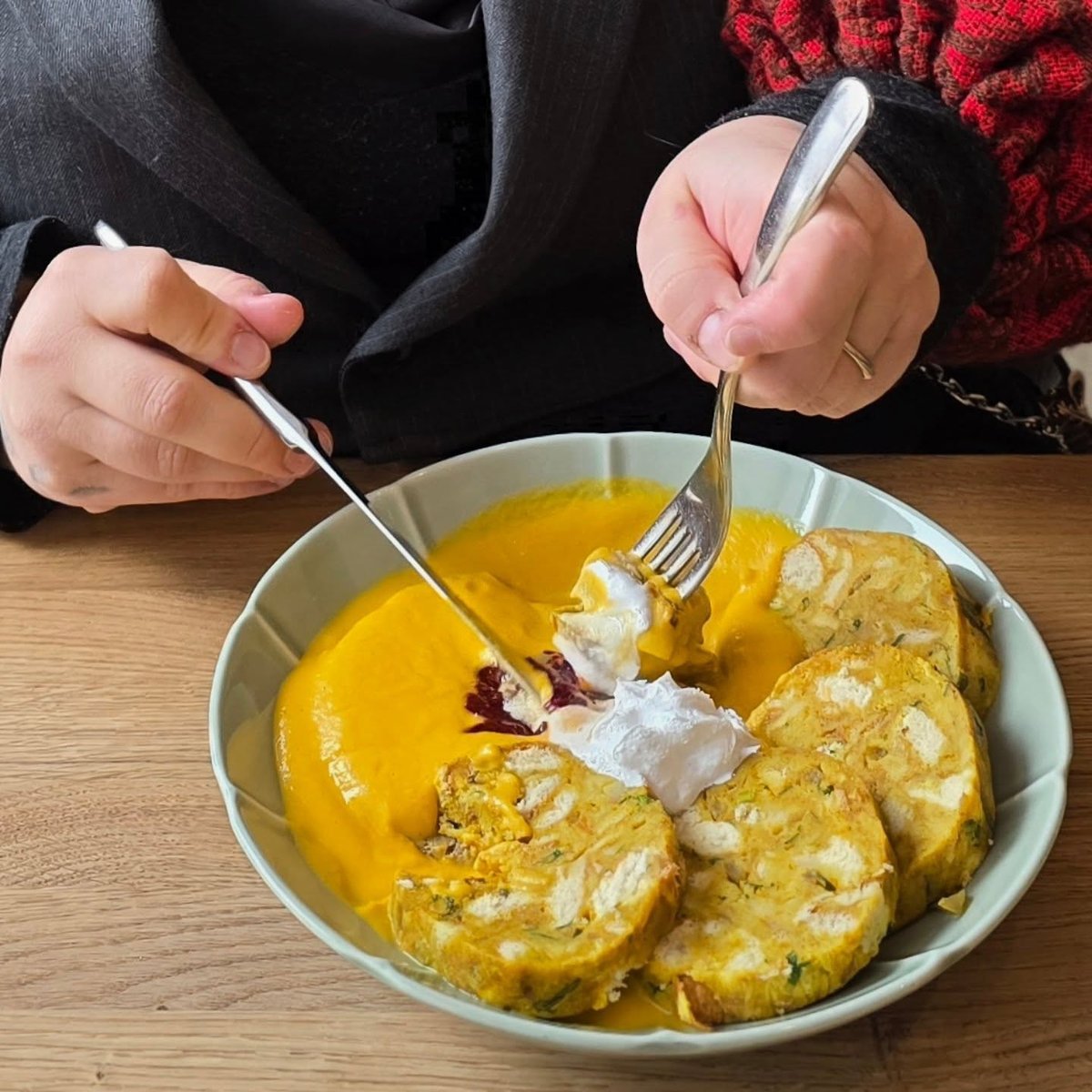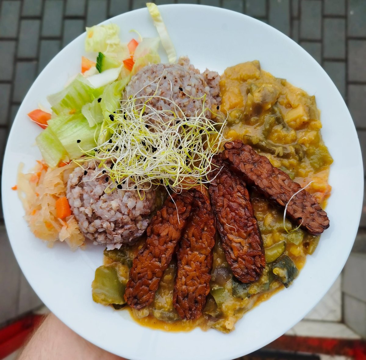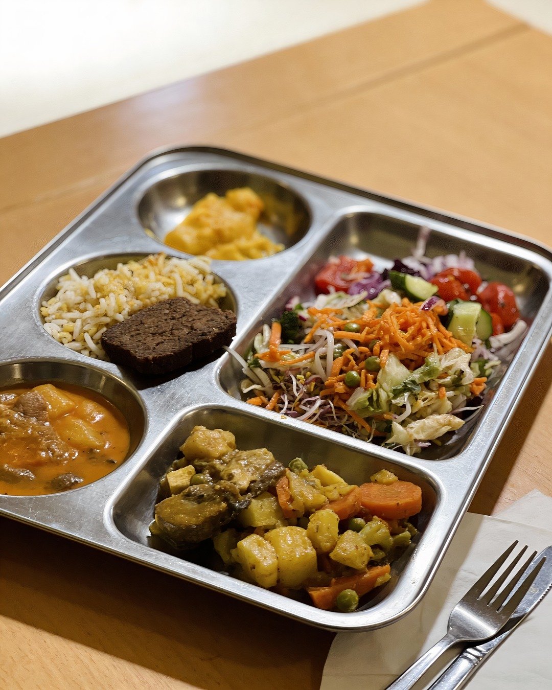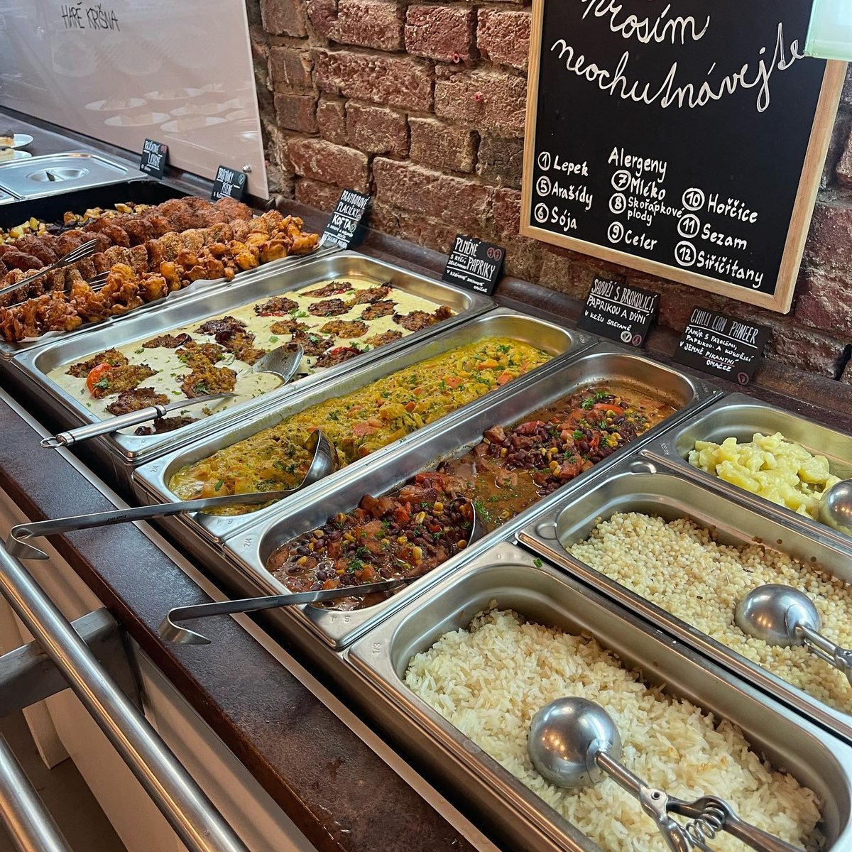 V denní nabídce najdete třeba Zeleninové kičrí (kombinace čočky, rýže, dýně hokkaido, celeru a rajčat) nebo sytý Alu daam, což je zeleninový guláš s pečeným bramborem, červenými fazolemi a restovanou zeleninou.