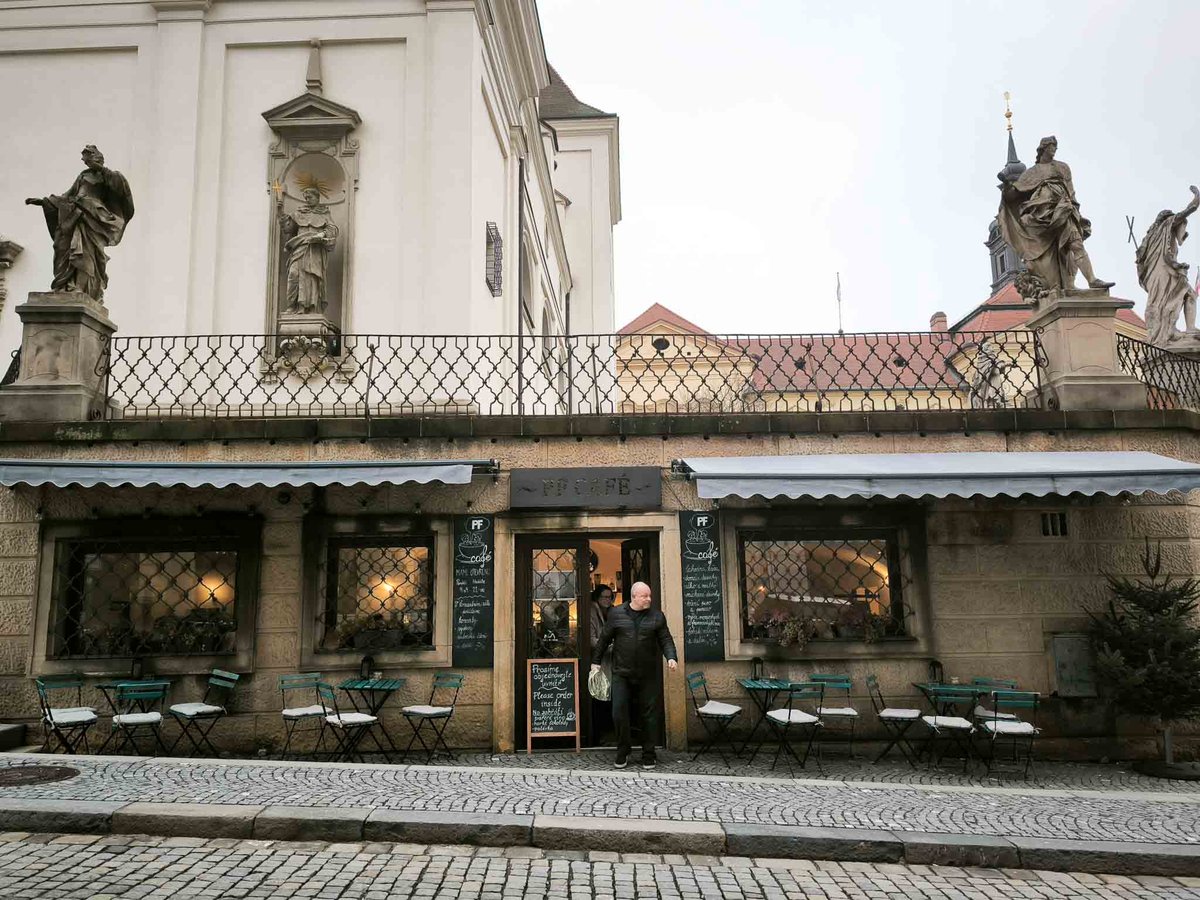 Kocháte se rádi ruchem ulice? Pak zavítejte do PF Café na Dominikánském náměstí. Jejich zimní menu je velmi široké a zaměřené na zahřátí. Najdete tu vše od klasického svařeného vína a horké čokolády až po kořeněné chai latte. Pokud potřebujete něco sytějšího, v nabídce mívají i polévku. Pravidelně se tu konají také výstavy či koncerty.